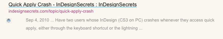 But for at least seven years now, there has been a bug related to Quick Apply that causes InDesign to crash. Here is a forum post about it from 2010!
