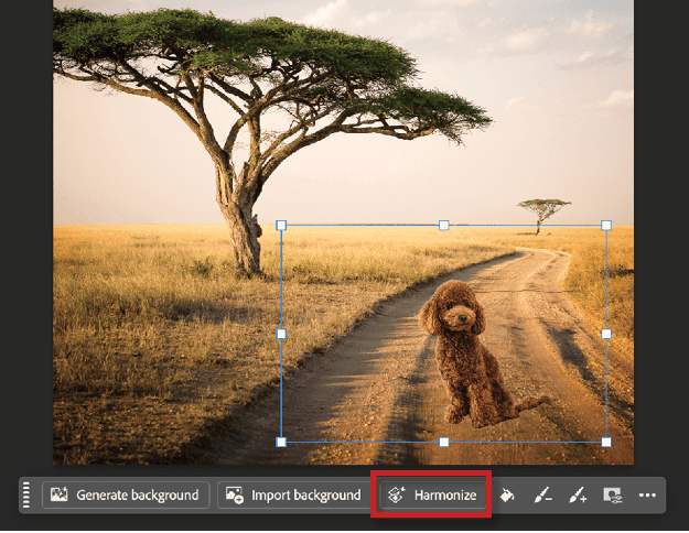 - With the subject layer selected, click Harmonize in the Contextual Task Bar.