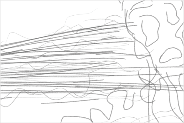 This technique works great with even rough sketches. Open a new document in Photoshop, and create a quick drawing on a white background showing where you want your smoke to flow and how it should transform into your ghost shape (Figure 28). Think of it as a roadmap for the AI.