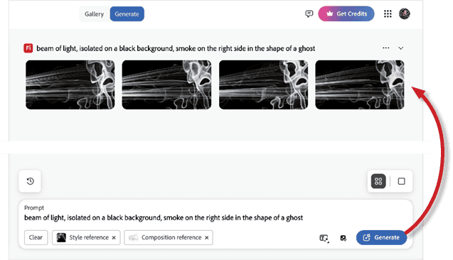 The next step is to give Firefly the parameters and reference images it needs to generate the results you envision: