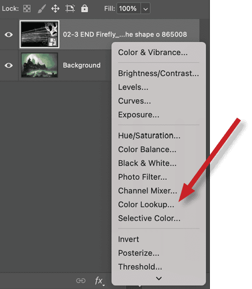 - Add a Color Lookup adjustment (Figure 33) layer, and choose Moonlight.3DL from the 3D LUT menu in the Properties panel.
