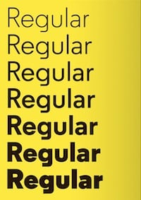 Gosh I love this font’s name. It suggests utility and pragmatism. It’s the kind of font you’d let your kid sister date. Yet Regular is by no means ordinary. It adapts easily to text- and headline-sizes. The examples below show how impressive it looks in large sizes.