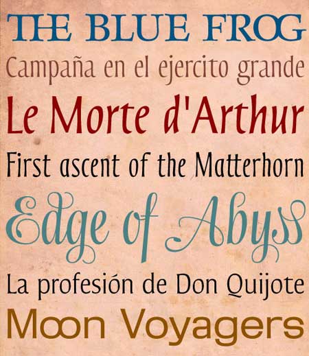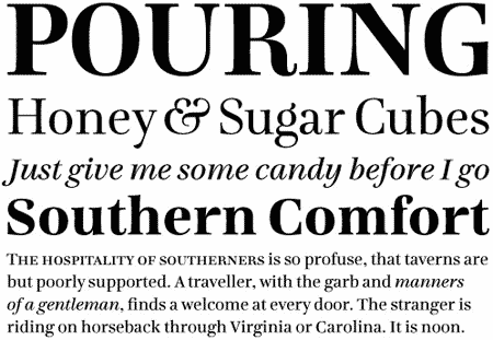 The well-received Lavigne Display now has a companion optimized for ease of reading at small sizes. Lavigne Text is as striking as more ornamental faces like Cochin and DeVinne, but with a structure designed for long reading. It features generous x-height, short ascenders and descenders, open counters and simplified details that improve its reproduction at small sizes.