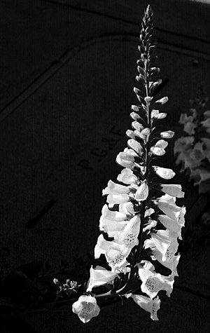 I figured that it would be possible to get a good black and white shot of the flower against an extremely dark sidewalk, something that you can’t do in the daytime.