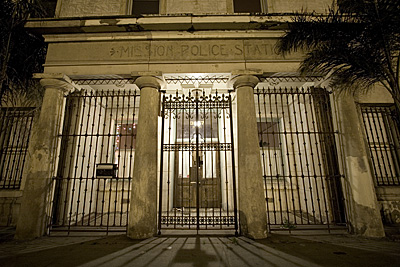 A San Francisco police station at night. I used a 1.3-second exposure.
