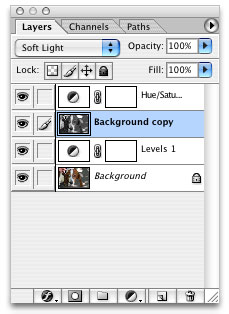 The Final layers palette. You can see in the Blending Mode popup that the upper image layer is set to Soft Light.