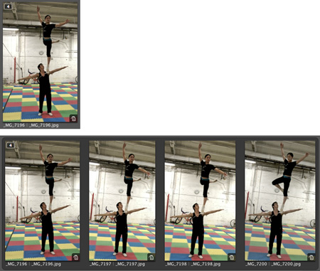 My earlier mistake was to continue to think in terms of documents and document management. The idea of dragging an entire folder full of documents into a place where I only wanted one document seemed like a ludicrous duplication of assets. But I wasn’t copying an entire folder full of documents. I was placing the image I wanted where I wanted it, and if I output the album as a Web page, book, or other supported output form, only the Pick image would output. The rest of the images from the stack were available only in case I needed them.