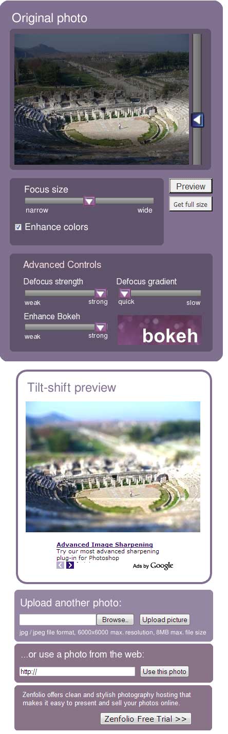 Lucky for those of without time or money to spare, someone built a nifty Web application that applies the tilt-shift effect to any photo you can upload to the site. It’s free, yet it offers the kind of control I’d expect in a native Photoshop effect dialog box.