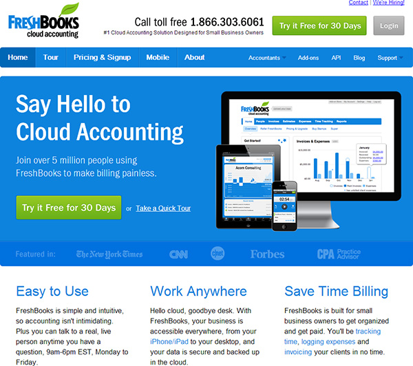 Upon visiting FreshBooks you’ll find tags saying “Try it for FREE,” which usually means the service isn’t free past 14- or 30-days. That is not the case with Freshbooks. Despite what it looks like, the free account is free forever. Of course, FreshBooks wants you to upgrade to a paid account, which is what the subtle “try it for free” language is about, but the basic service is still free.