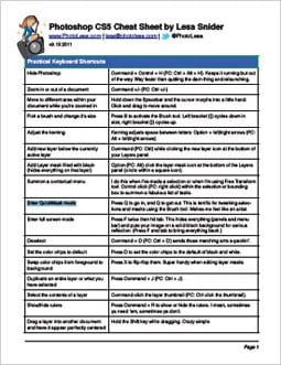 Photoshop CS5: The Missing Manual and several CreativePro.com articles, is giving away a “Photoshop CS5 Cheat Sheet” to anyone who likes her new Facebook page.