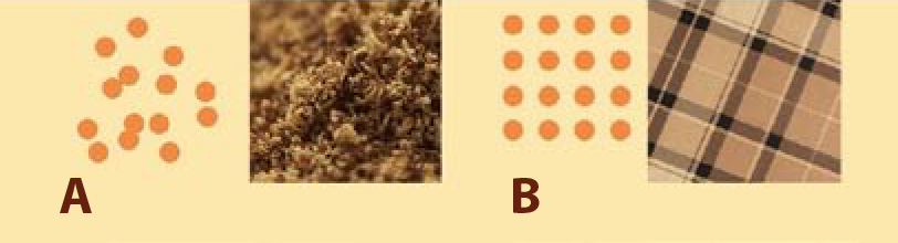 SURFACE ACTIVITY Also called texture or pattern, which are themselves dis- tinct: texture [A] is irregular, random, or organic; a pattern [B] is repetitive and/or geometric—hence, artificial or invented.