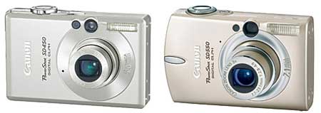 The Canon PowerShot SD450 Digital ELPH is an ultra-thin 5.0 megapixel point-and-shoot camera in an all-metal body. It also shoots sharp video with sound at 30 fps. The PowerShot SD550 Digital ELPH is a 7.1 megapixel camera that records video with sound at either 30 fps or 60 fps. Both cameras have software features, such as color swapping, and good white balance controls. –Andrew Shalat