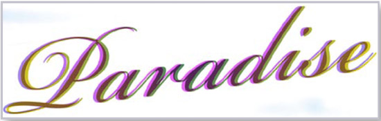 In the Trouble in Paradise spread, I made extensive use of transparency by applying blending modes not just to the flower’s leaves and petals, but to gradient text, as well. Even within a single text frame, multiple ranges of gradient text can even exist alongside default black text and color text. Unless you want to apply your gradient to all the text in the frame, you’ll need to highlight the specific range of characters with the Type tool before applying the gradient fill. Once applied, you can adjust the gradient’s location and angle with the Gradient tool. For the Trouble in Paradise art, I used two overlapping yet slightly offset versions of the text, each filled with a different radial gradient (Figure 8). I applied a Multiply blend mode to the topmost text to produce an interesting color effect.