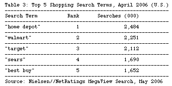 Consumers are increasingly connecting with major retail stores via search engines, underscoring the influence search can have on online and offline buying. This is particularly evident in the top five shopping keywords, all of which are brick and mortar stores (see Table 3).