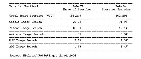 Table 3: Top 5 Image Search Providers ranked by Share of Searches, February 2006 (U.S.)