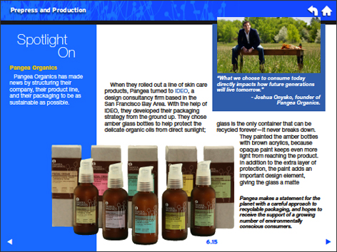 Graphics Gone Greenitself pushes the boundaries of publishing and environmental sustainability. It is one of a very small number of ebooks that was designed from the very beginning to be read digitally, with a unique interface, vibrant design, and multimedia functions not found in most ebooks, and not possible with tradi¬tional printed books. It was created and is distributed with a minimal carbon footprint, achieved with an array of practices and technologies that are also featured in the book.