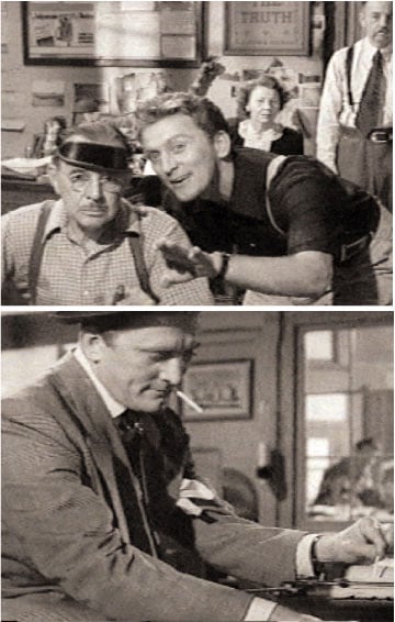 Figure 3: “Ace in The Hole” is one of Billy Wilder’s best, and stars Kirk Douglas as a brash reporter who can’t draw the line between reporting the news and making the news. In a favorite scene, below, Douglas lights his match holding it against the typewriter platen and hitting the return key.