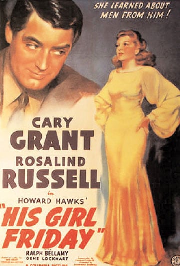 Figure 5: For the best of newspaper themes and romantic comedy, nothing beats “His Girl Friday” starring Cary Grant and Rosalind Russell. Grant plays the conniving editor to Russell’s smart but soon-to-be-married reporter.