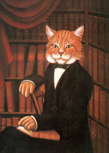 Figure 3: Illustrators often picture cats as sophisticated and smart, as in this Mark Hess illustration for the book “The Intelligent Cat,” above. And of course you can’t say “kitten” without using the word “cute” as well.