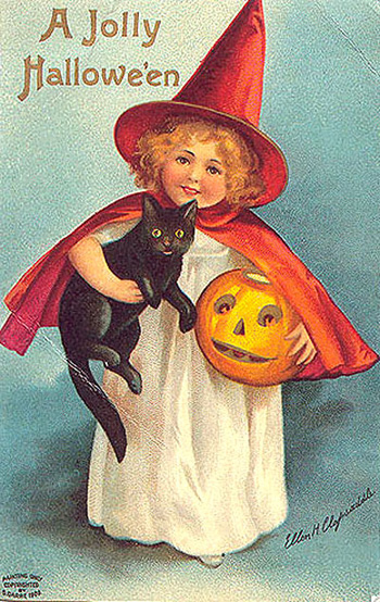 Figure 7: When children’s book illustrators want to picture the ultimate friendship, they often show cat and mouse together as in these early Halloween images.