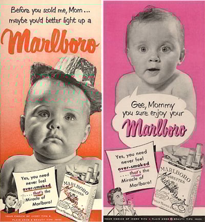 To not learn from the advertising practices of tobacco companies would be a huge mistake, of course. In the “golden age” of cigarette advertising from just after WWII through the Sixties, ad agencies worked not just to counter the increasingly negative information coming out about smoking, but to dramatically change the brand loyalty and smoking habits of tobacco consumers. While we can question the ethics of this work, there’s no denying that it was well done.