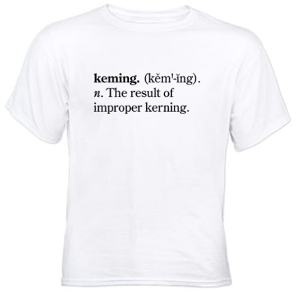Keming T-Shirt$21.99Definition of “keming”: n. The result of improper kerning. Available in several styles.Get It Here