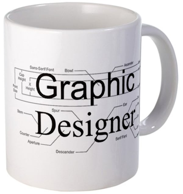 Graphic Designer Mug$12.99A coffee mug worthy of any graphic designer or typophile, this dishwasher and microwave safe cup features a diagram explaining the typographic parts of the words “Graphic Designer.”Get It Here