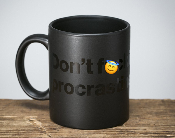 I’m a huge fan of the art of procrastinating, but having a mug to remind me to keep it to a minimum in stealthy black-on-black is f%$*@g cool. Pardon my français, but sometimes you just need a reminder to focus and get your work done. And if you like your mug advice to come laced with a bit more profanity, try this one. (Smiley added to protect the pure minds of innocent designers)