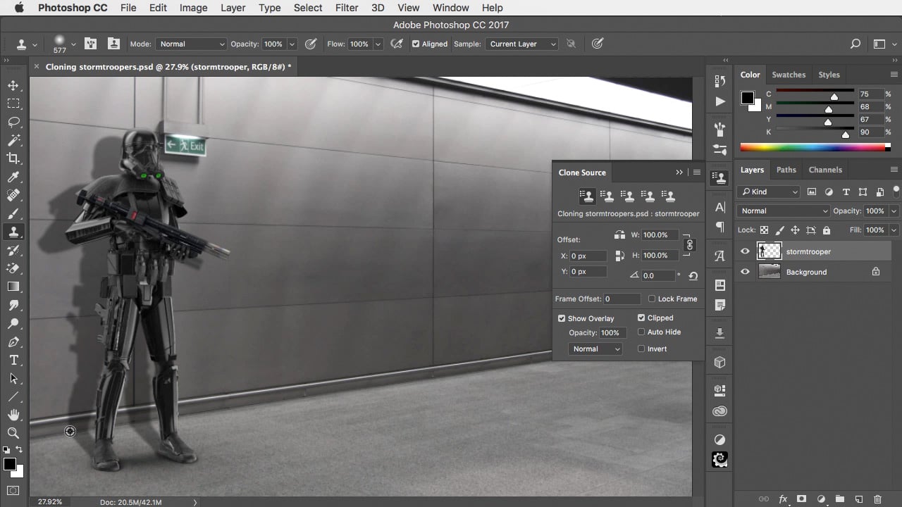 What’s better than a Star Wars Stormtrooper? A whole row of Stormtroopers, of course. Here’s how you can make your own Attack of the Clones in Photoshop, using the Clone Source panel.