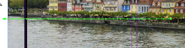 - The bright green arrow displayed on the image is the “motion path” of the animation. It indicates the direction and length of the pan effect (Figure 5). With the Direct Selection (white arrow) tool, click on the arrow, and then drag the anchor point at the arrow head end of the line to adjust the motion path length and direction (Figure 6). A shorter line will cause the image to pan less, a longer line will cause the image to pan more. It takes a little practice to get your head around how this affects the movement of the image, but after some practice it will become clear. Make small changes to the line, and preview the result, repeating until you achieve your desired pan movement.