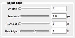 The Adjust Edge section lets you fine tune your mask in a number of ways. Smooth removes jagged edges in the mask, not needed in this case. Feather applies an overall softening to the entire mask edge, also not needed here. Contrast is sometimes useful in bringing back ghosted edges of well defined areas caused by high radius values. Unfortunately, increasing the contrast can also cause hair to look too wet, so use it carefully. Shift Edge is probably the most used option. Slide it to the left to contract your selection, and slide it to the right to expand it. Shift Edge is often used to reduce color fringe by contracting the selection. In this case, it helps remove the fine white line along her left arm but at the expense of the hair. Leave all of the Adjust Edge values at zero.