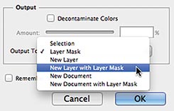 What do you want to do with your Refine Mask edits? The Output To pop-up menu lets you alter your existing Selection or Layer Mask, or you could create a New Layer, New Layer with Layer Mask, New Document, or New Document with Layer Mask. Select New Layer with Layer Mask.