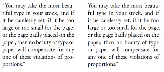 Figure 1: Squint! Before (left) and after (right) fine-tuning Justification, Tracking, and Hyphenation attributes. The texture on the right is more even and presents less visual