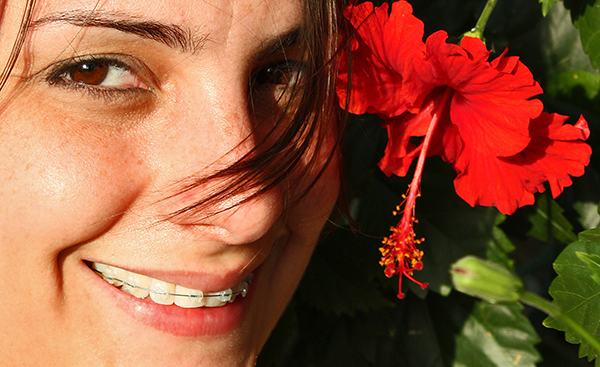 Below is the original photo I’ll be improving. She’s a lovely girl, in a beautiful setting, and the photo is well framed. The only thing marring the shot is her slightly yellowed teeth and the presence of pink veins in her scleras. Both are easy to fix—even with the braces on.