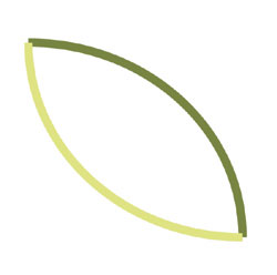 Step 4: Set your arcs. Next, we’ll create leaves. To do so, select the Arc tool from the Toolbox. Then, draw one Arc dragging the mouse in an upward motion toward the left of the document. Set the Stroke color to a shade of green. Next, create another arc, but this time drag the mouse down and to the right making the leaf shape shown in Figure 7. Set the Stroke color of this arc to a lighter green or yellow.