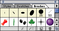 Step 3: Begin to paint. Once you’re relaxed and focused on what you’re going to paint, launch Illustrator. Create a new document to work on. Then select the Paintbrush tool and choose a nice round or oval brush to work with. The brushes highlighted in light yellow in figure 4 work well for this technique. Figure 5 shows a simple stroke we created with each brush.