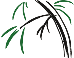 Step 4: Add color. When your painting is complete, try adding a little bit of color. Although many traditional Sumi-e paintings are black and white, some do include splashes of color. For example, in figure 6 we made some of the leaves green. Experiment a bit and see what works with your image.