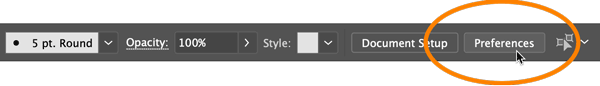 - You’ll also find a Preferences button on the Control bar when nothing is selected in your document.