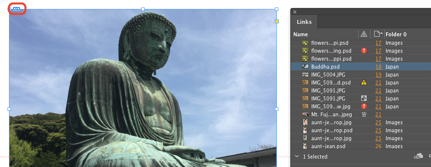 5. A super-quick way to open the Links panel (and select an image in the panel) is to Option/Alt-click the link adornment on the frame of a placed image. The image does not have to be selected first.