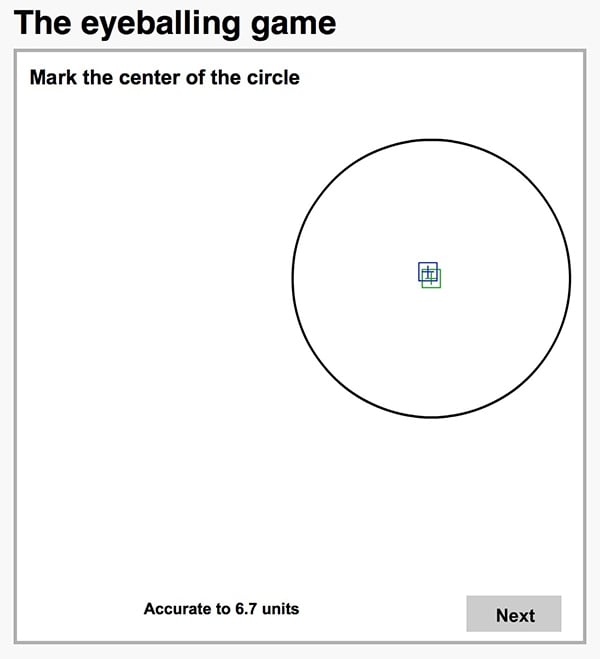 If you’re in the group that prefers to rely on your visual accuracy, you might want to test how fine those skills really are using the Eyeballing Game. This addictive online test quizzes you on finding the midpoint of a center, bisecting an angle, making perfect parallelograms and right angles, pinpointing the convergence of three points, and finding the exact center of a circle—something I can’t seem to master to save my life.