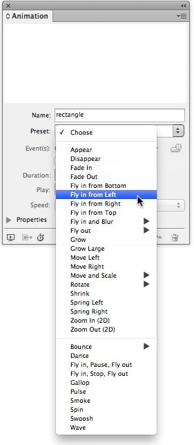 Okay, well, look? we all thought the Animations feature in InDesign CS5 was the coolest thing since sliced bread, but there’s one major, huge, horrible, painful, icky problem: InDesign only currently creates these animations as Flash (SWF) files! That is, you can export them all beautifully to SWF, but that’s it. So no animations when you export PDF files, EPUB files, or anything else you can get out of InDesign. (There is a script that can help, for PDF files.)