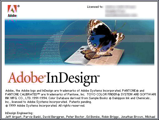 From the earliest days of InDesign, Adobe used a butterfly in InDesign’s branding. A butterfly appeared in every splash screen and virtually all marketing materials from 1999 up until the release of version CS3 in 2007 (Figure 8).