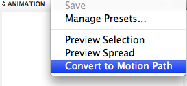 Note that if you export a page to SWF, it’s not actually necessary to hide parts of the animation that extend into the pasteboard, since they won’t be visible in the exported file. However, if you export a selection to SWF, you’ll get everything, including stuff on the pasteboard.