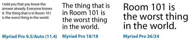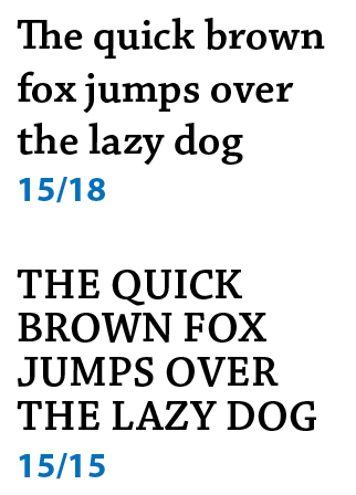 Figure 2: Positive leading works OK for body text sizes, but as the type gets bigger, proportionally less leading is needed.