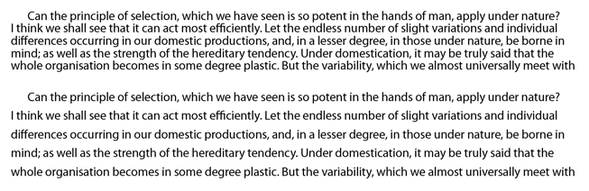 Figure 10: Using optical leading: In the second version the leading for the fourth line is reduced to compensate for there being no descenders on the line above.
