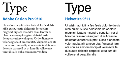 Figure 5: Identical text set in 9 pt Caslon and Helvetica shows that fonts with larger x-heights (like Helvetica) require more leading for optimum legibility.