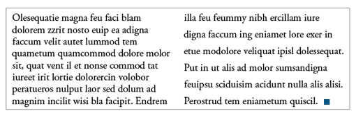 With columns of text, it’s usually preferable to have those columns be of uniform depth. Rather than use Vertical Alignment, which increases the leading in the short column to make it bottom out (i.e., end on the same baseline as other columns), you’re better off using Balance Columns, which adjusts the height of all columns, rather than just extending the shortest one. Vertical alignment has its place—like when you need to make text fill a sidebar—but it can wreak havoc on multi-column text (Figure 9).