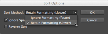 Figure 16: The SortParagraphs.jsx script offers several options to control how selected paragraphs will be sorted.