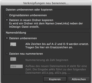 In today’s cross-platform world, a best practice is to stick to standard alphanumeric characters in filenames for any content placed in InDesign. Among the problems that can crop up when using extended or platform-specific illegal characters is the failure to package files properly or broken links when moving content cross platform. Even images that have spaces in their filenames can cause problems! EPUB problems have also been reported, as these characters can be badly mangled in HTML. Enter RelinkImages, a free script to clean up all of those links (Figure 18). The direct download for the script is here.