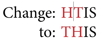 Some old editorial and word processing systems featured a “transpose” feature that would interchange two characters, and people have asked for this feature in InDesign. Indeed, InCopy even has a transpose feature (Edit > Transpose), but alas, not InDesign! But of course, this can be remedied with a simple script I wrote (Figure 20).